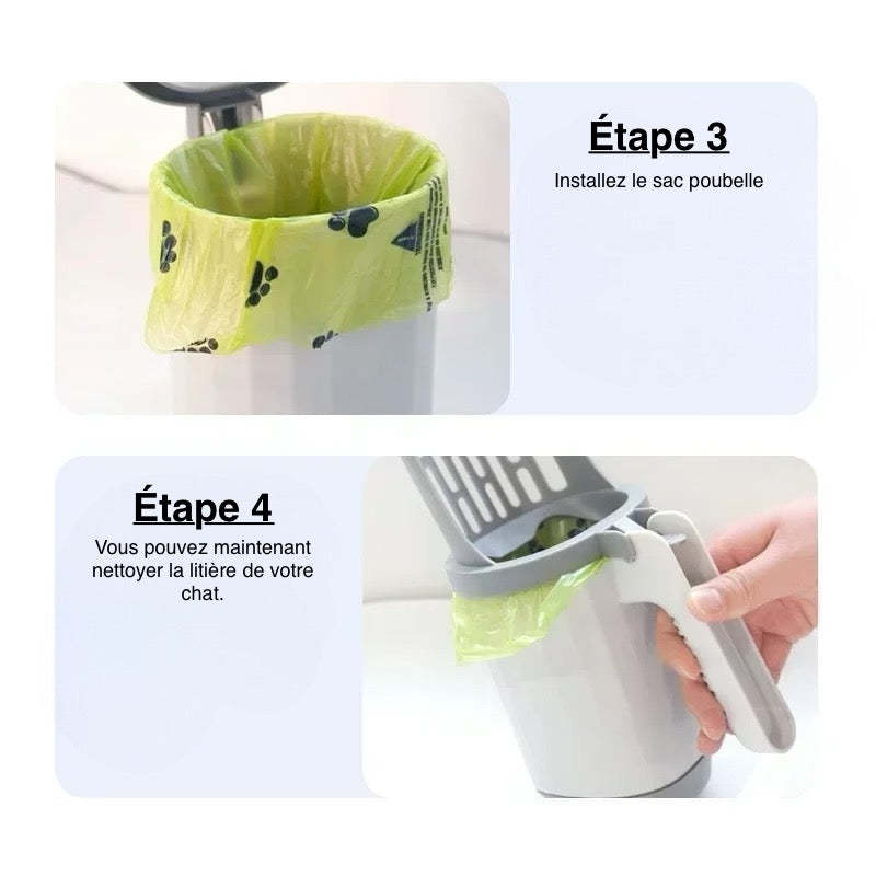 🧹 2-en-1 Pelle et poubelle : Gagnez du temps en nettoyant la litière avec un outil tout-en-un.